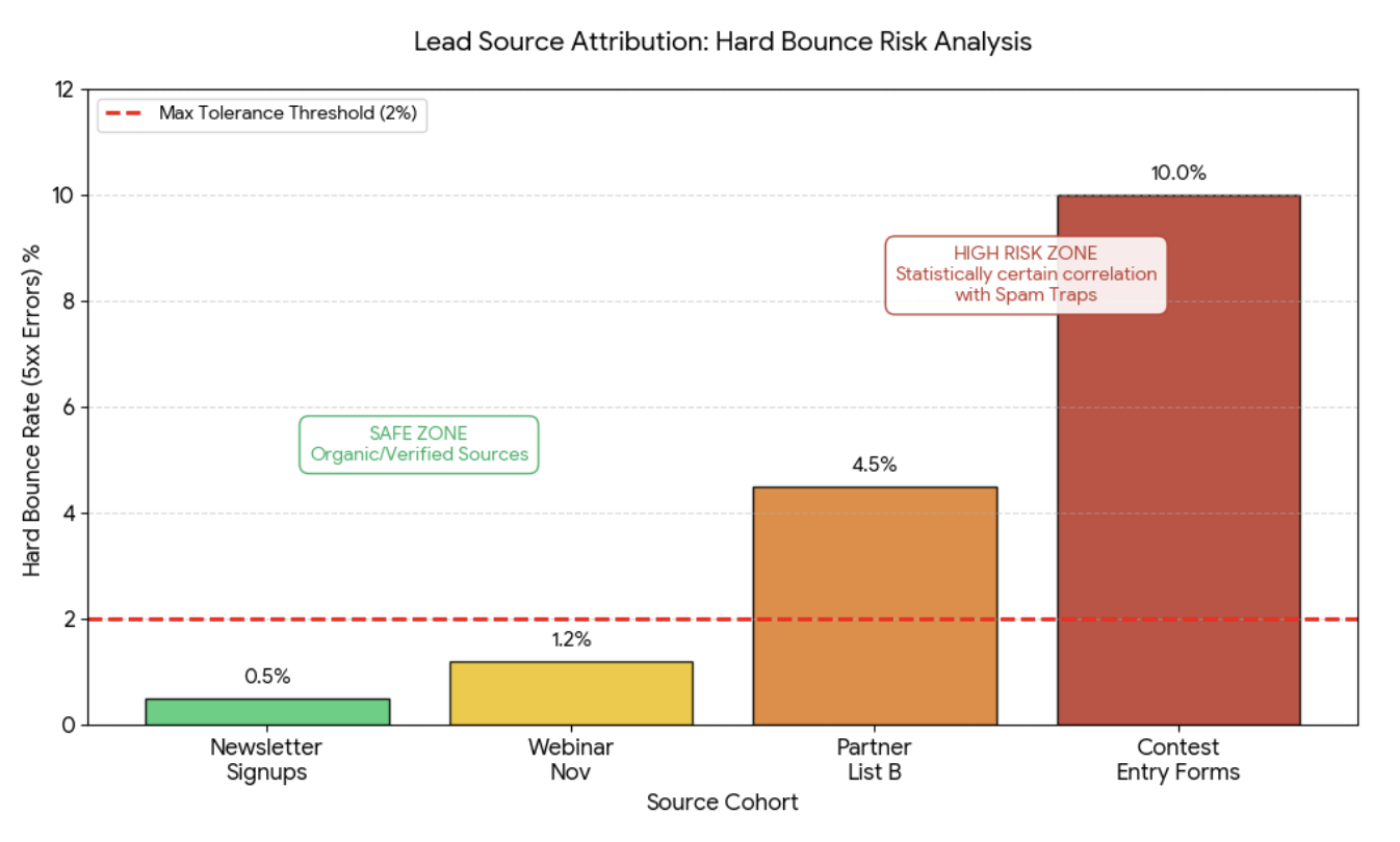 For example, if you analyze your logs and see that contacts acquired via "Contest Entry Forms" historically have a 10% bounce rate, while "Newsletter Signups" have a 0.5% bounce rate, the Contest source is polluted.